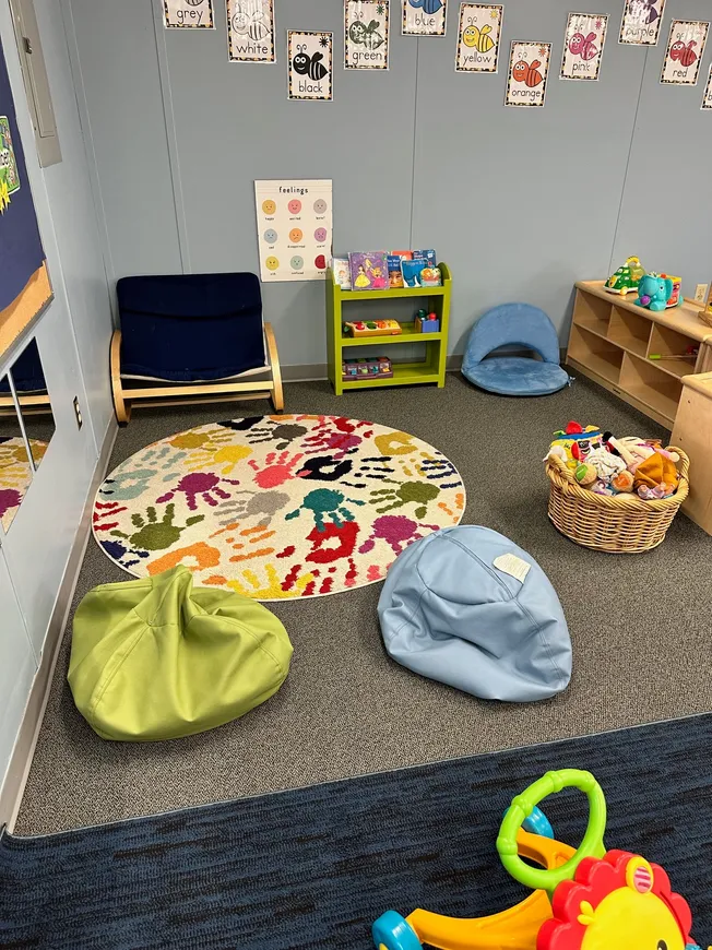 Our classroom reflects our deep commitment to safety, emotional security, and exploration. Every area is intentionally designed, with soft textures, toddler-sized equipment, sensory stations, movement spaces, and quiet corners to help children feel comfortable and confident. My goal is to create an environment where your child feels free to explore while always knowing they are safe and supported.
